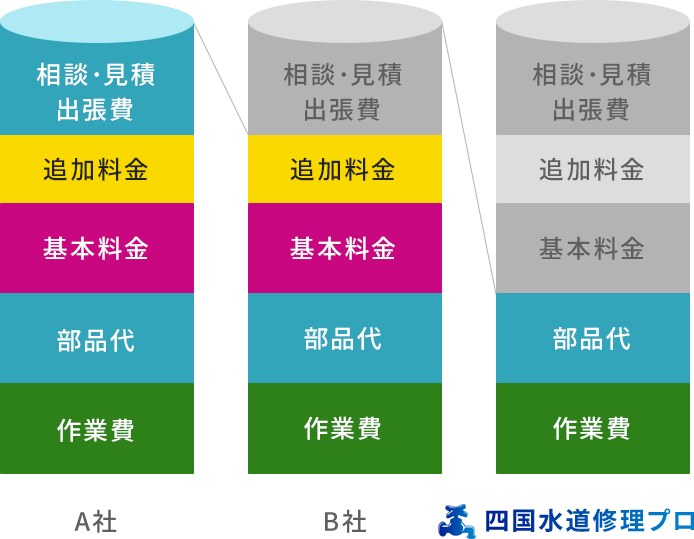 四国水道修理プロでは、お見積りの際に正確な金額をお伝えし、作業後に金額を変更することは